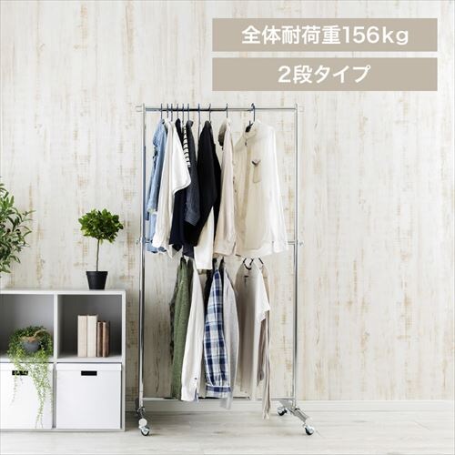 服をかけても、移動しても、グラつかない耐荷重156kgタイプのパイプハンガーです。