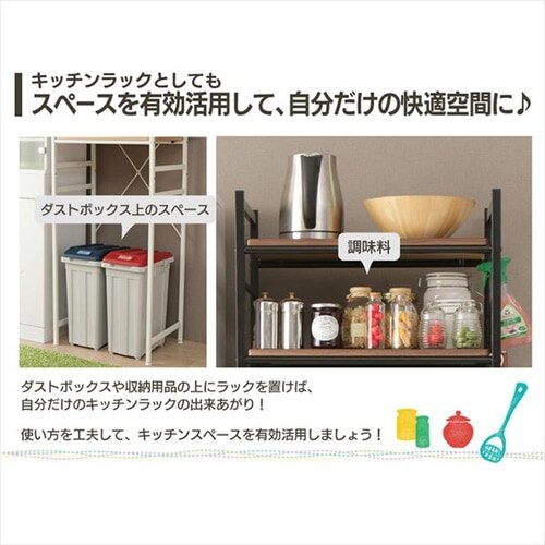 空いている冷蔵庫の上をたっぷり収納スペースにしてくれるキッチンラックです。