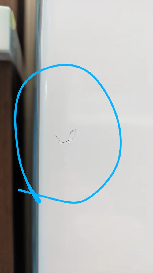 - まさか、こんなにキズがあるとは・・・早く開封してれば良かった・・・。正月休みに入り問題があるのに対応してもらえない。置き場所がすぐに作れない為に、届いてすぐに開封せずに、業者に玄関に置いててもらい、1週間程置いていた。移動せずに、玄関で段ボールを開封してみると、扉の右上に打痕?凹みがあり、扉の左真ん中辺りには、キズがあった。画像のように・・・3万円割引クーポンで買えて喜んでいたのに、これはアウトレット品ですか?届いたらすぐに開封し、商品を確認する事をお勧めします。