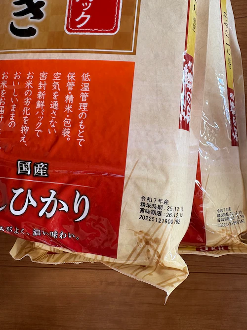 - 12/12 に発注、11/25精米の米が12/15に届きました和の耀きシリーズはこしひかり100%(福井産?) より低価格のブレンド米の方がおいしかった当たり外れがあるかも備蓄米も発売当初は佐賀から郵送され美味しかったけどストックがなくなる前の仙台からの備蓄米、おいしくなかったようやく店頭価格も下がってきたので米屋さんで購入したほうがいいかな