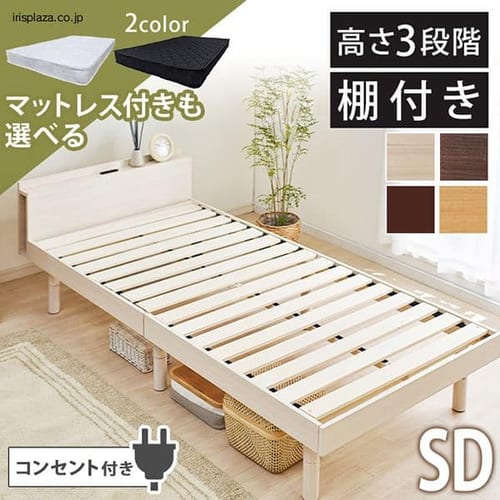- ベッド セミダブル すのこ 棚 コンセント付き 高さ3段階 全4色 TKSB