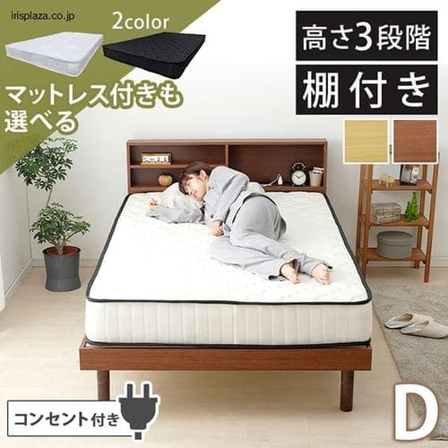 - ベッド ダブル すのこ 棚 コンセント付き 高さ3段階 全4色 SKSB