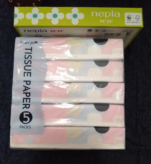 - とてもお安く買えて満足。他のレビューにはティッシュの硬さのことが書いてありましたが、私自身はそんなに気にならなかったです。