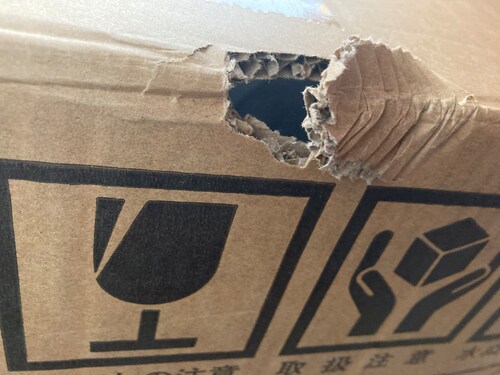- 佐川急便が配送、段ボールは破損をテープで補修した状態。9本のうち1本のネジが付いておらず、組み立て未完のまま。オーヤマコールに電話するも、大型冷蔵庫サイズの商品を送るので、足だけ入れ替えて返送してとの事。狭いマンションのどこでそんな作業するの? 足だけ送れば済むのに、今のご時世ドライバーが気の毒