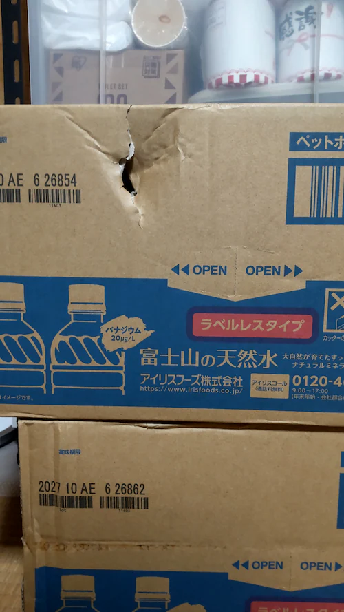 - なんといっても届けていただけること、そして、お値段!ありがたいです。ですが、この度、2つのうち、ひとつの箱が破けていました。段ボールが少し薄いような気がしました。その他は問題無いので、また頼みたいと思います。