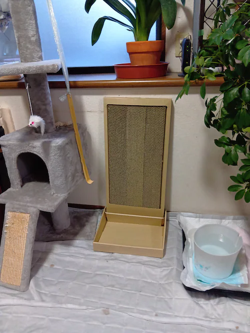 - 組立てに苦戦。設置後は安定している。爪とぎの姿を見かけない。