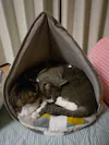 - 冷たい風もさえぎって、肌触りの良いクッションが気に入ってる様子。すぐに入ってくれました。
