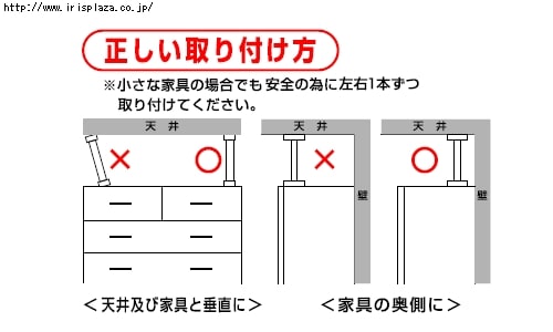 設置面の面積が広く、揺れても天井と家具をしっかり固定します。