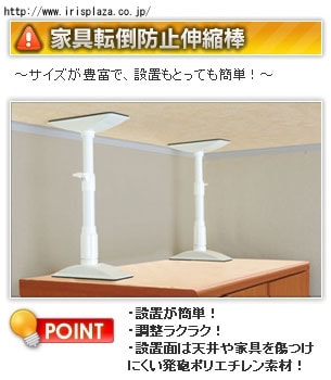地震の際に家具の転倒を防止する突っ張りタイプの家具転倒防止棒です。公的機関振動試験で転倒防止効果を実証済みです。