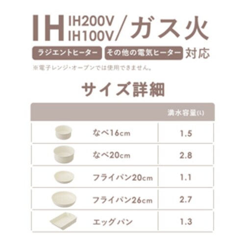 IH対応(IH200V、IH100V)、ガス火、ラジエントヒーター、その他の電気ヒーター