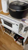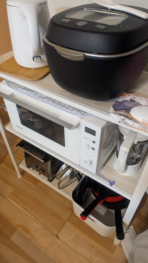 - 某会社の期間限定安売りを待って、スチール製またはステンレス製のラックを買うつもりでした。サイバー攻撃かなんかの影響で手に入らないと聞きがっかりしていました。けれどここで探して購入して大正解でした。何より組み立ての必要がなく、ただ開いて板を乗せるという簡単な構造はとても良かったです。炊飯器、電気ケトル、電子レンジ、ミキサーなど、かなり重いものを置きたかったので若干心配していましたが、なんとか大丈夫そうです。これ以上は置くのをやめた方がいいかなという感想ですが、枠組みをバッと広げるだけというのが何より簡単でしかも安い。3倍出して購入しなくて本当に良かった。