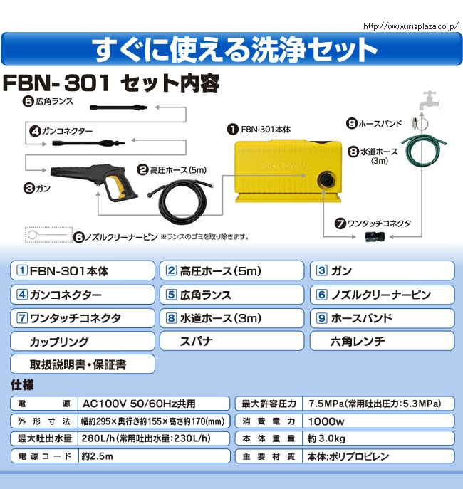 - 高圧洗浄機 FBN-301+回転ブラシ FKB セット