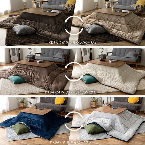 暖かさをキープするソフトベロア素材のこたつ掛布団とふかふか暖かな踏み心地のこたつ敷布団のセットです。