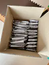 ふつうサイズ 購入 - 100枚で500円の安さに買いそうになり、同じ商品で700枚で1000円、1枚1.4円!を見つけあまりの安さに購入。58p✕43p✕24pの段ボールに商品がピッタリ詰められて届きました。1枚ずつ小分けされ衛生的で持ち運びに便利です。耳が痛くならないフワフワ紐なのもいいです。