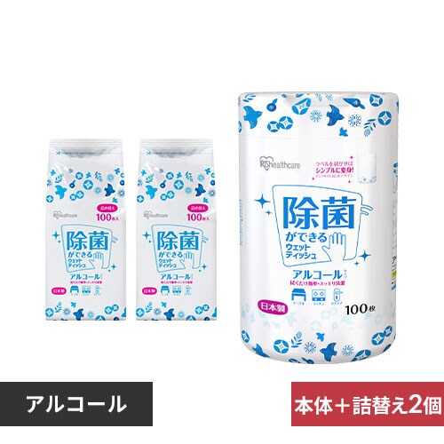 ウェットティッシュ アルコール 本体 WTB-100A + 詰め替え2個セット WTT-100A