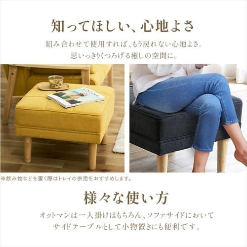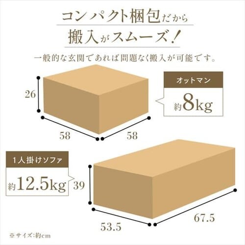 ソファは3ステップ、オットマンは脚を取り付けるだけの簡単組み立て。