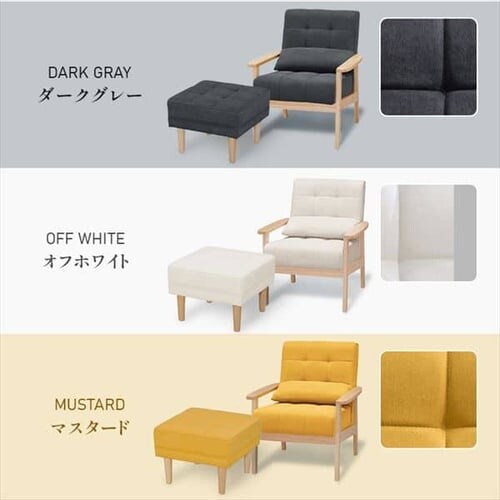 【2点セット】ソファ 1人掛け ウッドフレームソファ WFS-1Sとオットマン WFS-OT オフホワイト