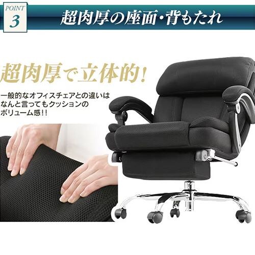 - 椅子 チェア オフィス リクライニング 170度 HLC-0852L-1 ブラック