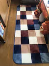 - こたつをだしたので下にひいてます。グレーですが明るめで汚れも目立たない感じです。なめらかな手ざわりで心地良いです。