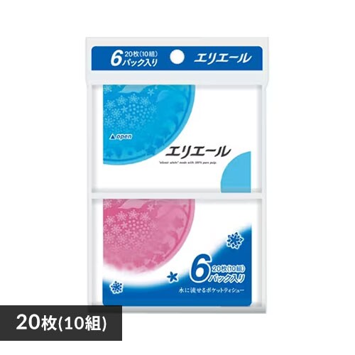 - 【6個】 エリエール ポケットティッシュ 20枚 (10組) 6個 大王製紙