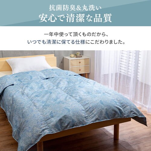 ホワイトダックダウンを使用した、軽くて暖かい肌掛け布団です。