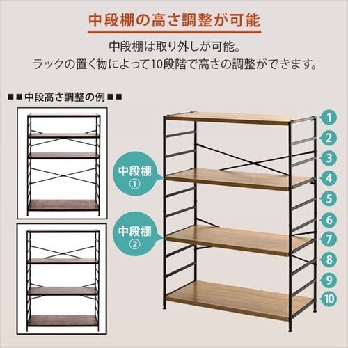 - ラック 木製 4段 スチールラック MSRK-4 オーク×ホワイト