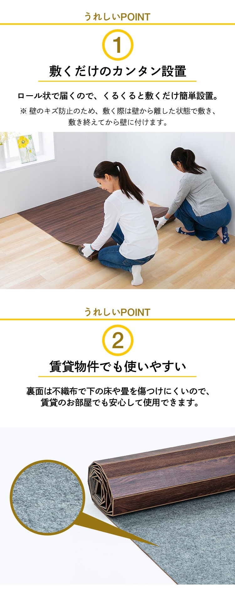 裏面は床や畳を傷つけにくい不織布を採用しています。