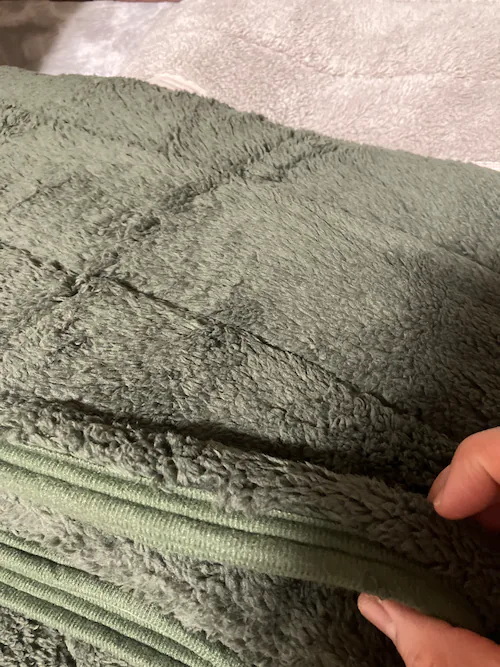 やわらかく、なめらかな肌触りで、長い毛足があたたかな空気を含む厚手敷パッドです。