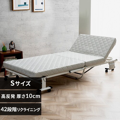 ベッド シングル 折り畳み 42段階リクライニング 厚さ10cm ライトグレー