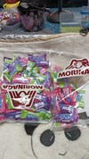 水あめ(国内製造)、砂糖、植物油脂、ゼラチン、濃縮グレープ果汁、ミックスジャム(りんごを含む)/酸味料、グリセリン、香料、乳化剤、アカキャベツ色素、クチナシ青色素