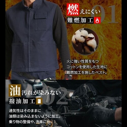 難燃・撥水・撥油・防汚・横ストレッチでどんな現場でも大活躍します。