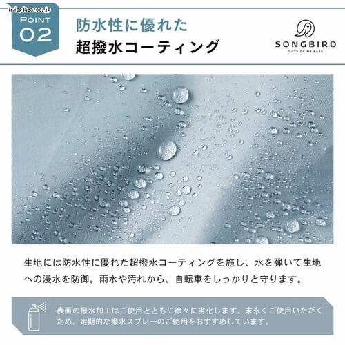 UV加工を施している生地で紫外線にも強く、しっかりと自転車を守ります。