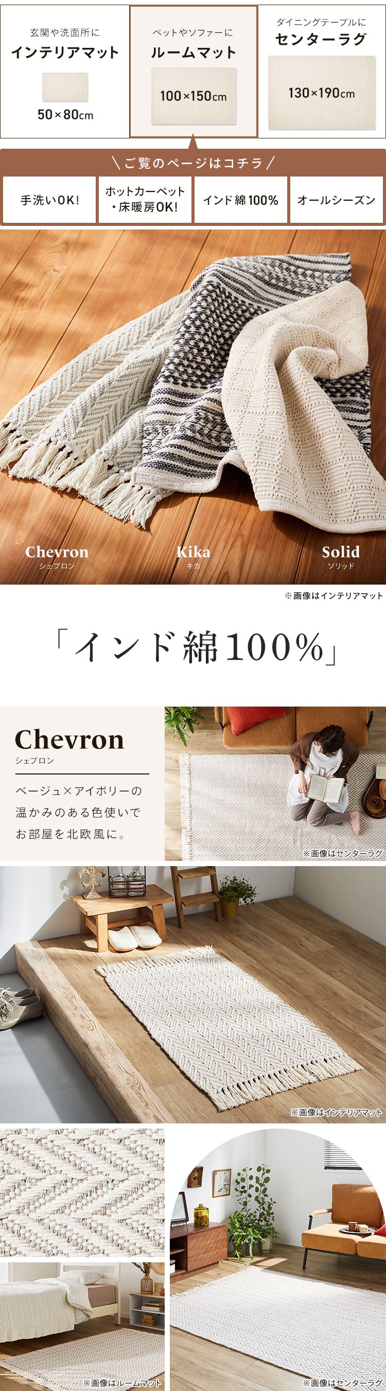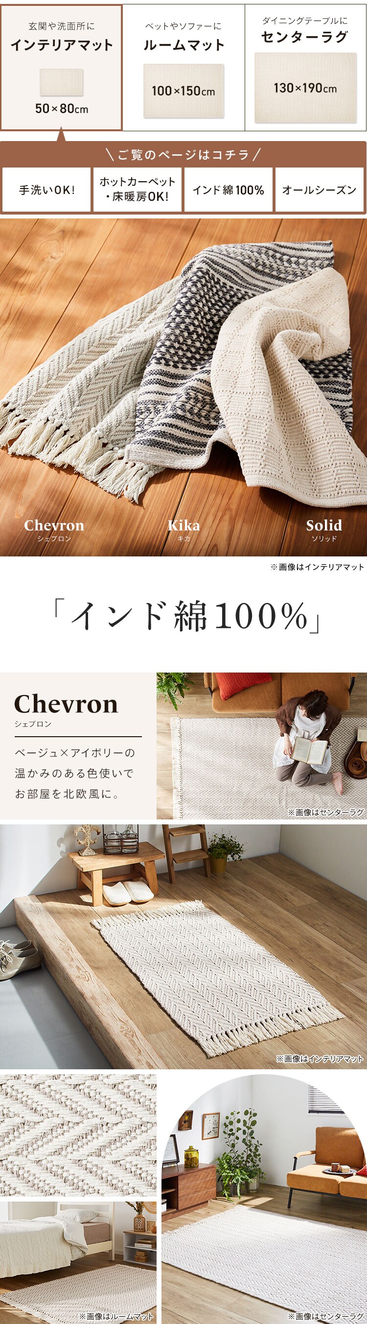 - 玄関マット インテリアマット インド綿100% 50cm×80cm キカ柄