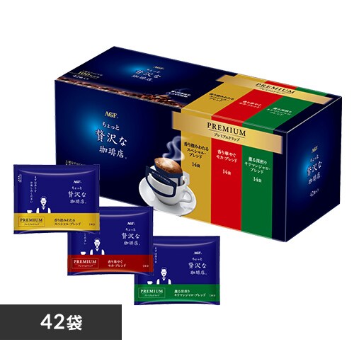 AGF(エージーエフ) 「ちょっと贅沢な珈琲店」 レギュラーコーヒー プレミアムドリップ 3種飲み比べアソート42袋は、ちょっと贅沢な珈琲店 プレミアムドリップ スぺシャル、モカ、キリマンジャロブレンドの3種類が楽しめる飲み比べアソートパックです。