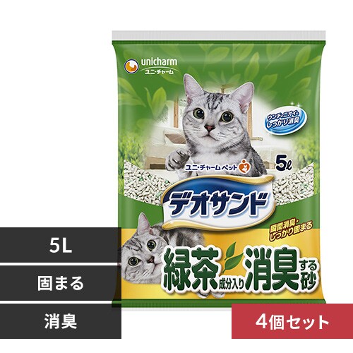 【4個セット】 ユニ・チャームデオサンド 猫砂 デオサンド 緑茶成分入り消臭する砂 5L 猫砂 システム
