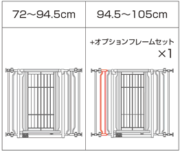 本体+オプションフレーム:幅94.5〜105cmまで拡げることが出来ます。
