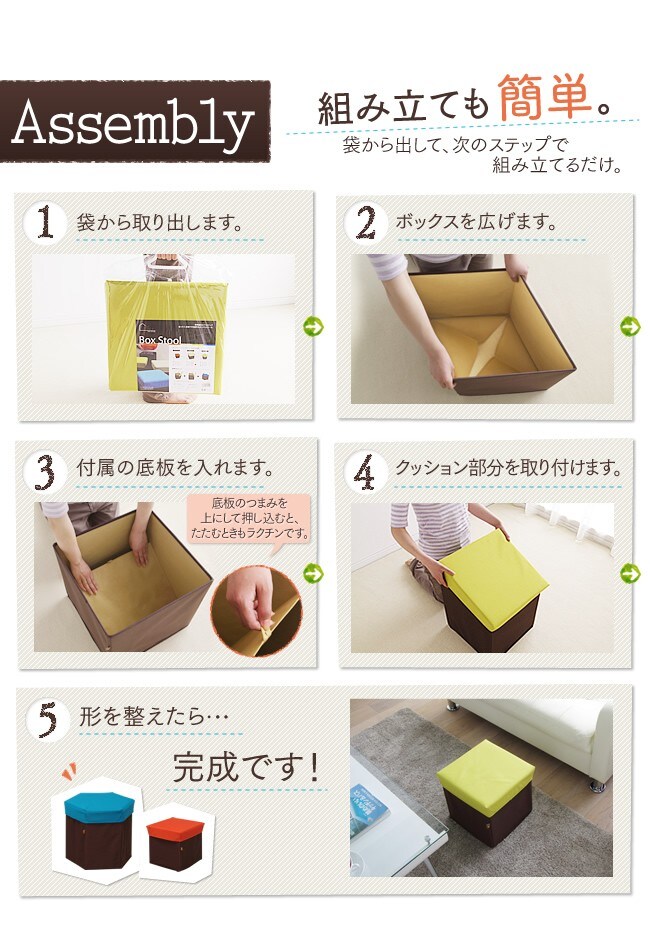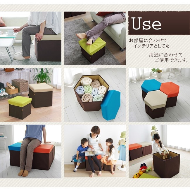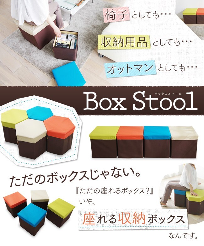 ≪収納ボックスなのに椅子になる!≫BOXスツール【ヘキサゴン】 ベージュ・グリーン・ブルー・オレンジ【プラザセレクト】