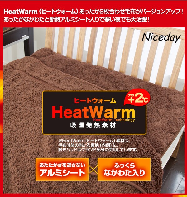 - Heat Warm(ヒートウォーム) 発熱あったか2枚合わせ毛布 ボリュームタイプ シングル ブラウン