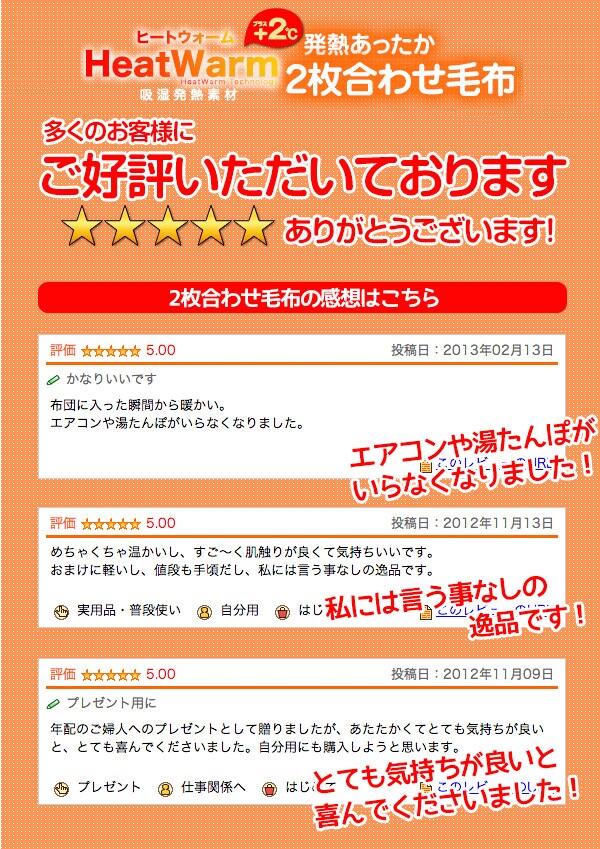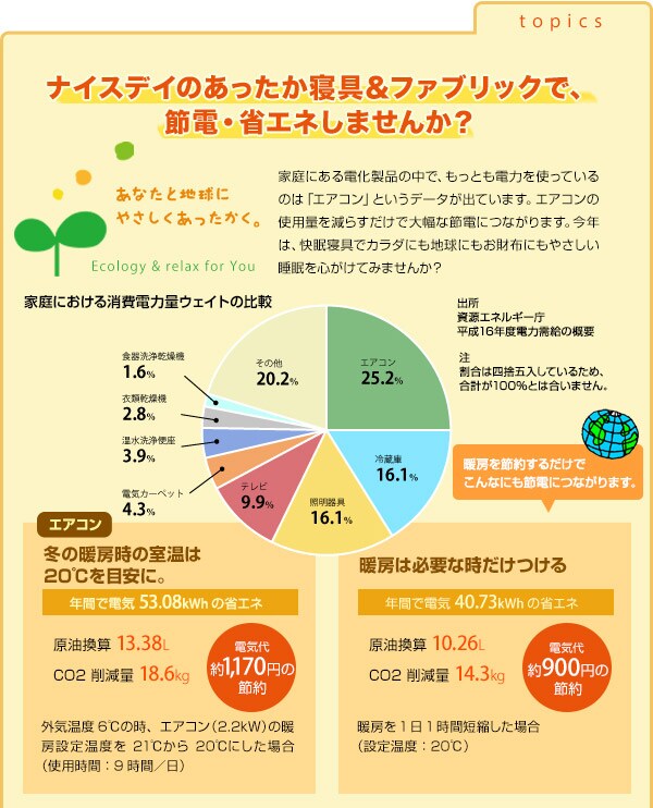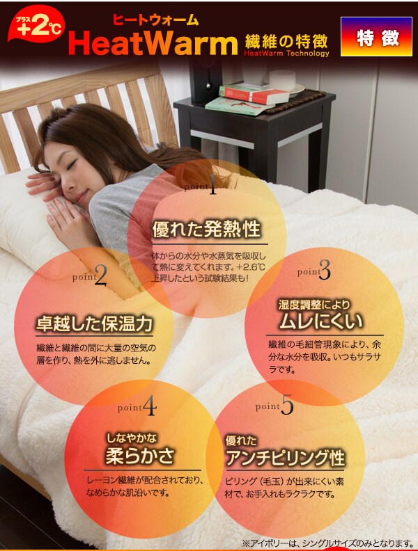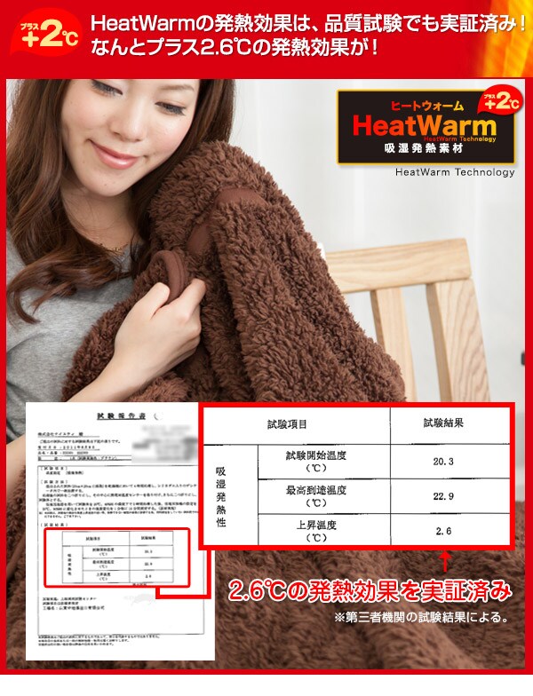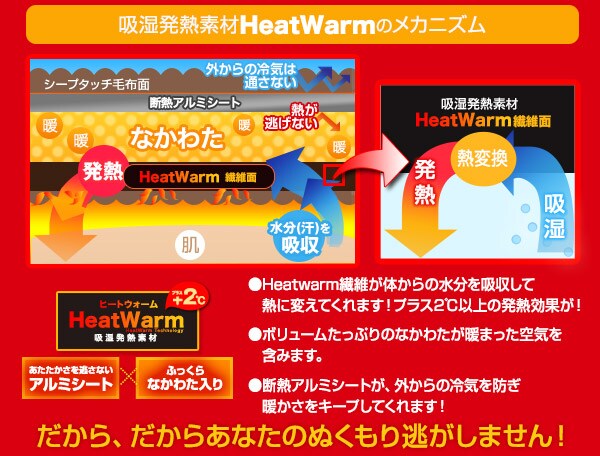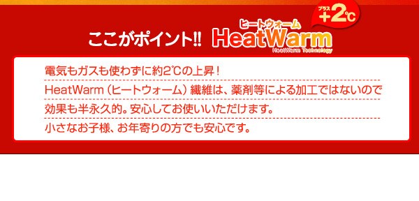 ヒートウォームで電気もガスも使わず寝るだけあったかプラス2℃。