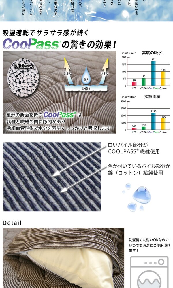カバー生地:綿50%、ポリエステル50%(クールパス繊維使用)