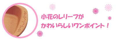 丸みを帯びたかわいらしいデザインで、ワンポイントとして小花のレリーフが入っています。