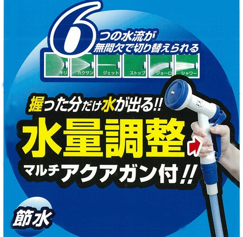 - ホースの径は若干細いですが、水圧は問題なく、ホースを25m引出してもよじれるようなこともなく快適に使用出来ました。ガーデン用に30m物を購入しましたが、もう一セット20m物を洗車用に購入予定です。