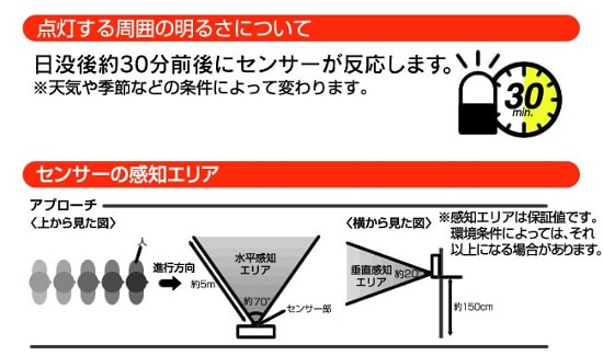 ・センサーの特性上、周囲の明るさ、温度差、移動速度、設置場所により、センサーの感度に差が出ます。