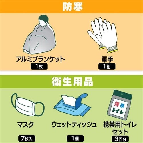 1人用5点入りセット、防災マニュアル付きです。