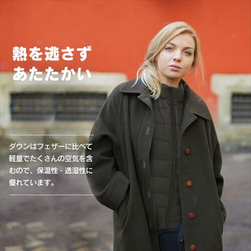 - 先の1シーズン使用した感想です。寒冷刺激で気管が反応し咳を誘発する夫用に買いました。羽毛ですので、そのままでも暖かいです。胸と背中上部が温まります。そしてボタンで無くジッパーだったので、暑くなった時の調節や脱ぎ着がしやすいです。襟も暖かいです。これをずっと求めてました。男性用はボタンで襟なしだったので女性用のLLを買いましたが、中肉中背の夫でもピッタリでした。出来たら同じ様な製品で男性用が有れば良かったのですが、入ったので問題なしです♪良い商品をありがとうございました。