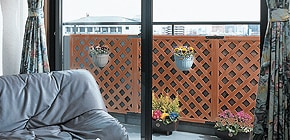 フレームの厚さ約3.5cm、ラティス格子部分板(1枚あたり)の厚さ約7mm、格子板幅約4cm、格子の隙間約7×7cm。