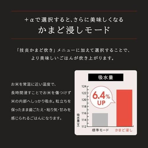白米・無洗米のごはんの食感をおこのみに調節可能。