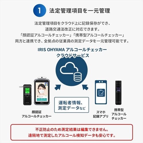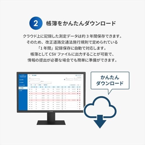 法定管理項目をクラウド上に記録保存でき、道路交通法改正に対応。