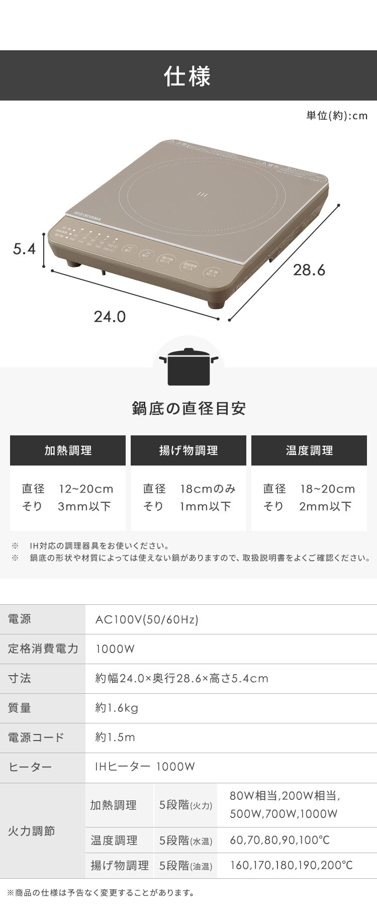 卓上で料理の保温から揚げ物まで多用途に使える簡単・便利なIHコンロです。
