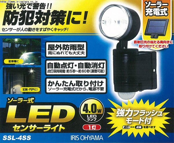 ソーラー式LEDセンサーライトSSL-4SSホワイト